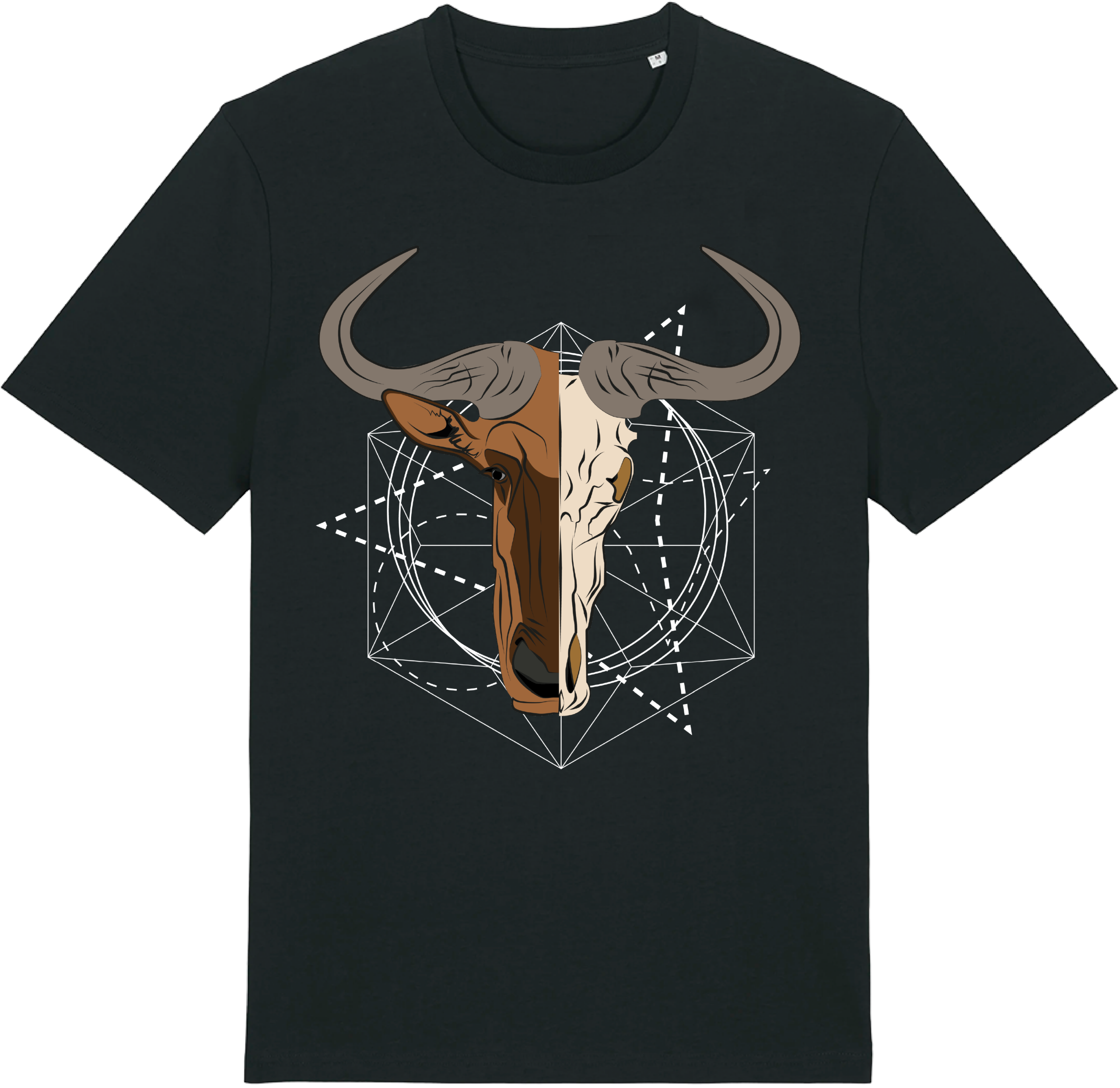 Unisex T-Shirt mit einem GNU Kopf als mehrfarbiger Front-Print.